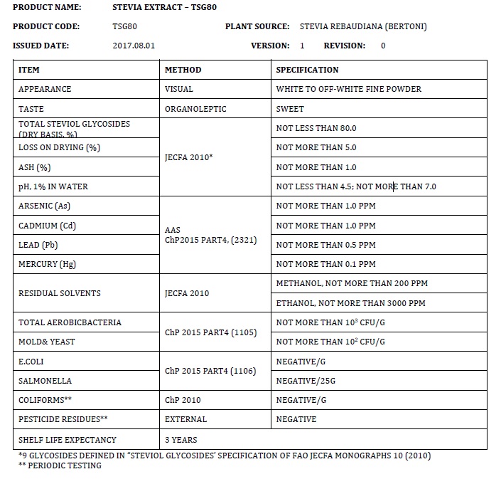 Стевиозид – представляет собой натуральную пищевую добавку (E960), одобренной в России и Европе в соответствии с ТР ТС 029/2012, выделенную из листьев растения Stevia семейства Compositae.